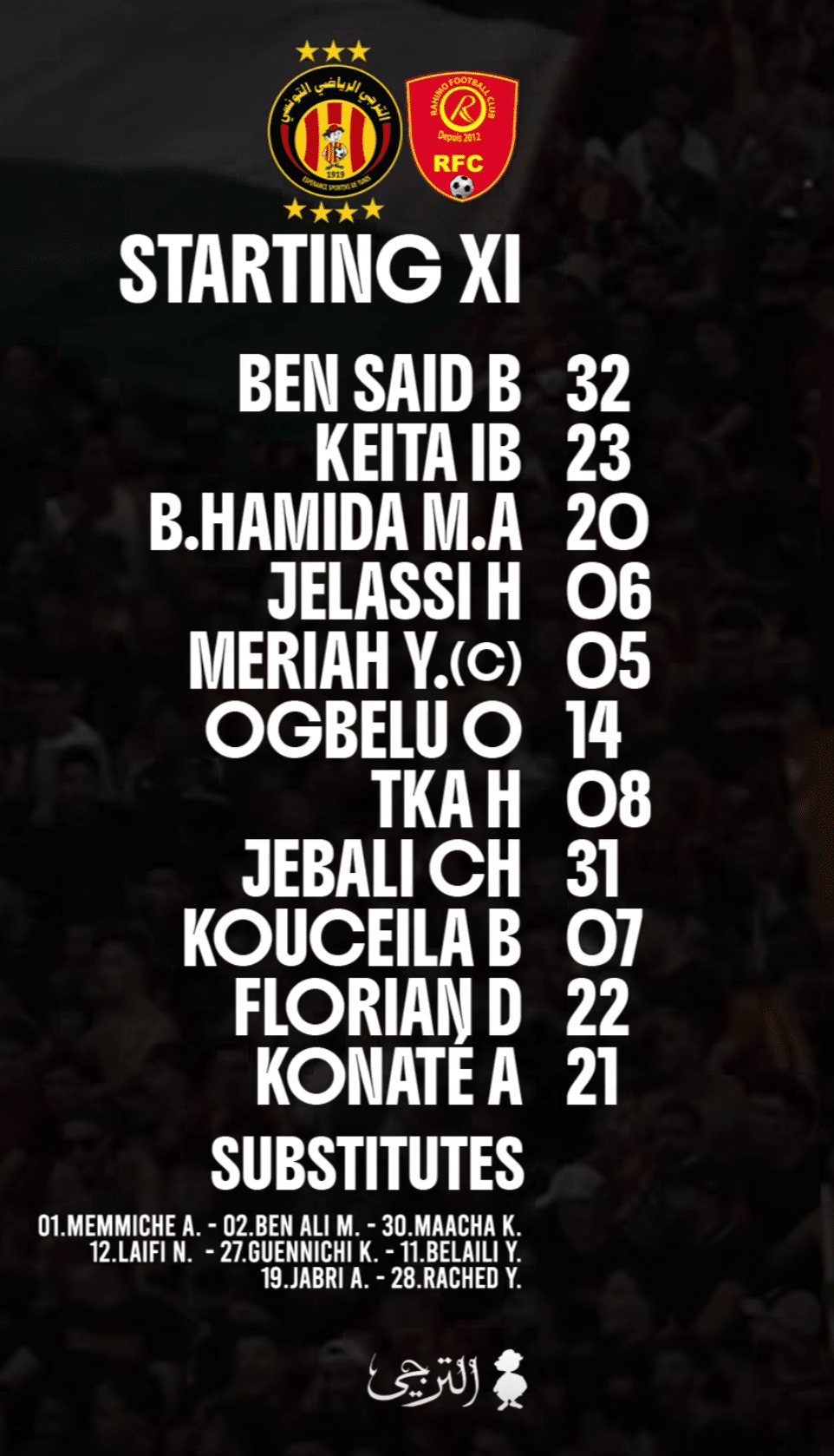 Compos officielles ES Tunis – Nairobi United :