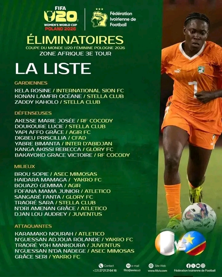 Dans la perspective du troisième tour des éliminatoires pour le Mondial féminin U20 Pologne 2026, le sélectionneur Mathieu Esposito a convoqué un groupe de joueuses déterminées pour affronter la RD Congo.