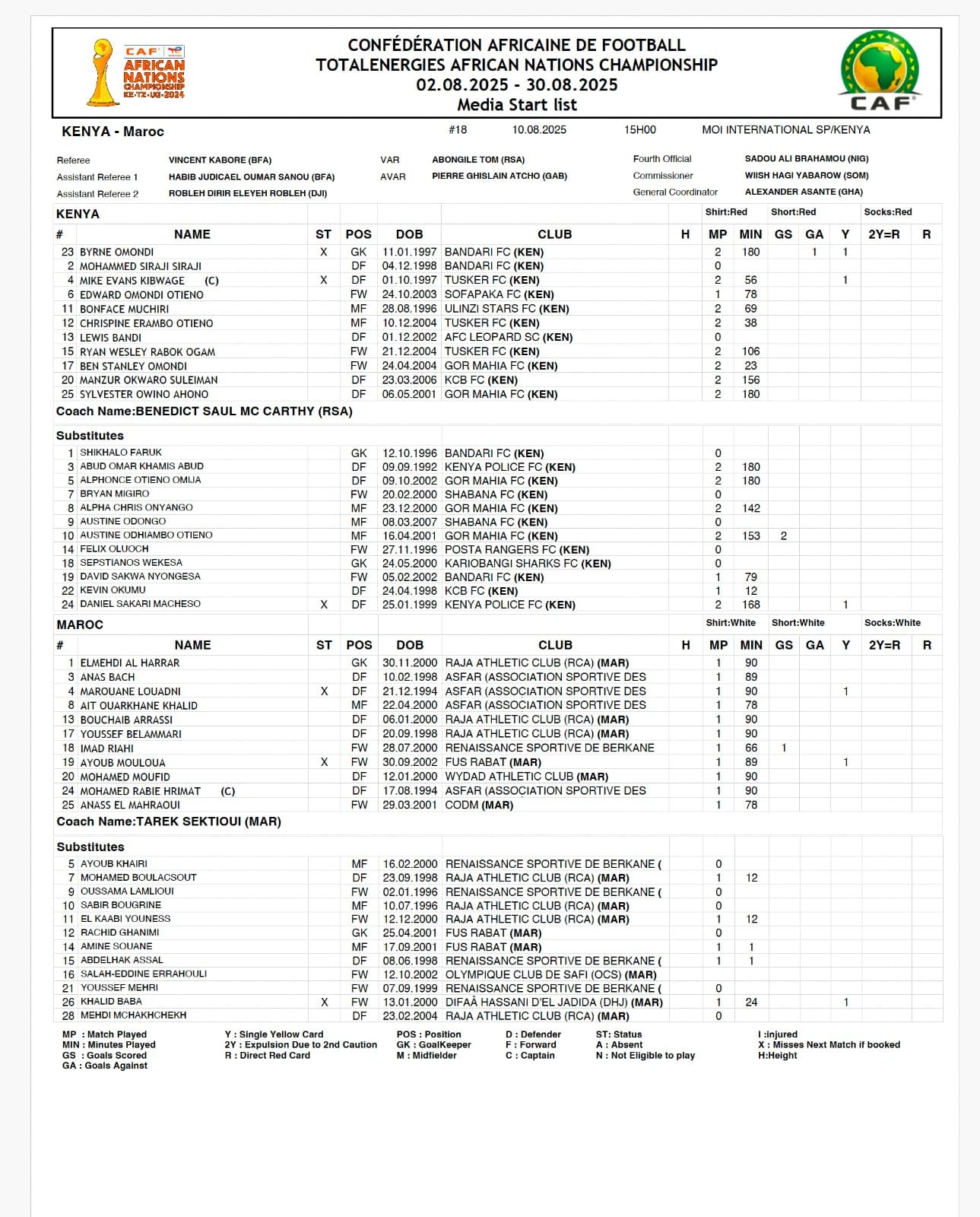 Le choc du jour met aux prises, ce dimanche, le Kenya et le Maroc dans le cadre des phases de poule du CHAN 2024.
